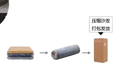 Compressed sofas, securely packaged for efficient shipment.